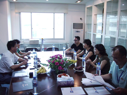 杨院长一行与福建沃特公司领导亲切谈论校企合作有关事宜