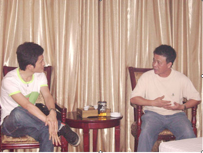 贵人鸟服装部首席设计师-------我院学生钟世琼与杨院长亲切交谈