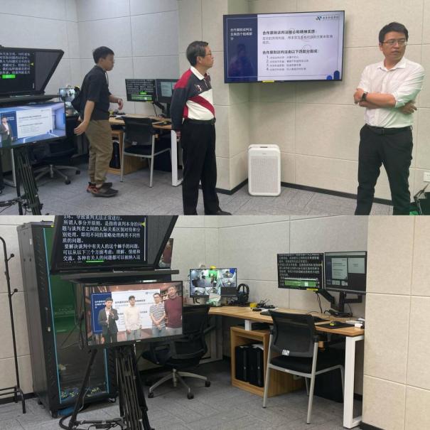 会后,在广州科技学院管理学院副院长王金良教授的陪同下,刘戒骄院长一行参观了管理学院电子商务专业直播电商实验室。管理学院实验教学管理中心主任罗福对直播电商实验室的教学仪器设备进行了详细讲解,并现场进行了演示操作。