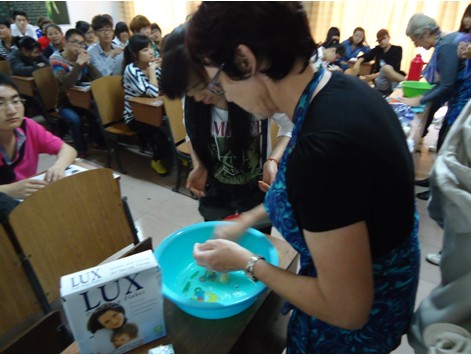 教师们做得不亦乐乎,同学们看得兴致勃勃。这次不但在座的师生们耳目一新,更达到了中西文化交流的效果,有利于中西方文化的渗透与融合。