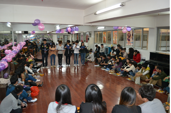 为欢送分院党建、团总支、学生会10级学生干部,同时欢迎团总支、学生会新成员的加入。11月6日16:00,服装商贸分院在798东五栋形体房举办了欢送迎新晚会。商贸分院团总支书记蓝岚、党建小组长及团总支、学生会全体成员参加了此次晚会。