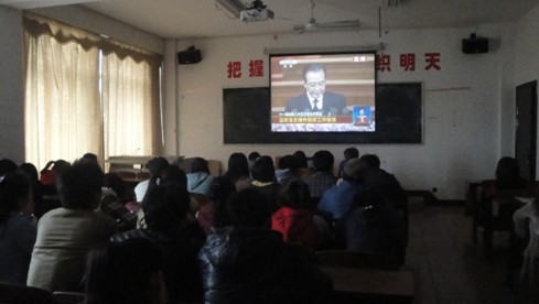 2012年3月18日,服装商贸分院党建联合分会组织预备党员、入党积极分子在主教学楼135教室观看了《温家宝总理作政府工作报告》。会议由支部宣传委员陈守本同志主持。