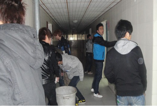 大家正在积极打扫过道
