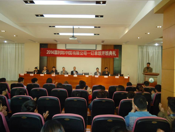2013年10月26日上午9:00时,在行政楼一楼报告厅召开利郞订单班开班仪式,参加此次仪式的领导有:利郞领航营销管理有限公司总经理陈宏胜、利郞公司零售管理中心总监林金文、利郞江西睿智分公司总经理庄英海、利郞江西臻道分公司总经理王杏洲、利郞领航营销管理有限公司人资经理张跃智、利郞公司臻道分公司人资经理徐碧云、利郞公司零售管理中心培训师陈小青、英国365集团副校长杨汉东、服装商贸分院副院长杨水华、及利郞订单班的全体同学。