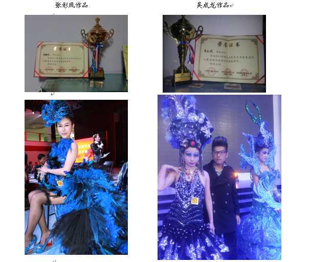 2013年12月4日第五届中国美业视觉艺术形象设计大赛(“美丽中国”视觉艺术交流会)在北京金球国际会议中心举行。此次大赛我院共选派四名学生参加,最终有3名学生喜获佳绩。他们分别是: