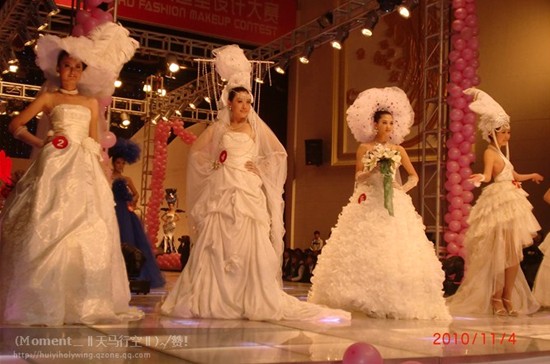 大赛主要分为新娘组,晚宴组,创意组。在大家期待和欢呼之下,所有参赛选手携模特上台亮相。伴随着精彩的表演,由服装商贸分院的形艺班的造型设计师们进行彩妆技术的比拼。在短短的45分钟的化妆比赛中,化妆师们挥动着手中的画笔尽心尽力的去表现自己的技术和能力。个性的服装创意和模特的高雅气质相互辉映,显得楚楚动人。