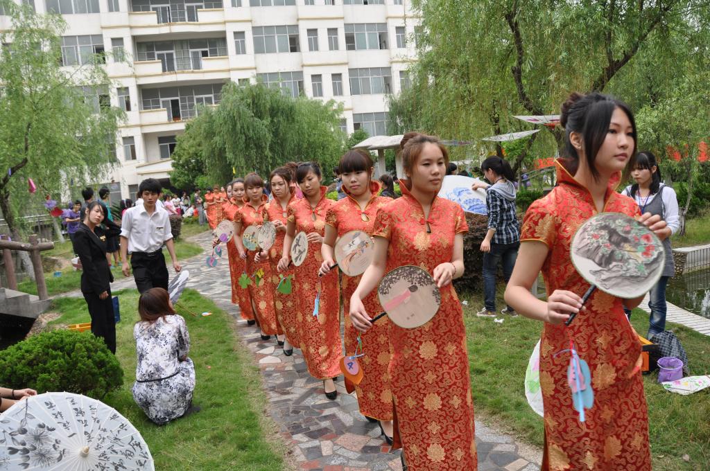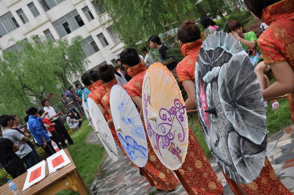 为了提高同学们对传统文化的追求,丰富大学校园文化生活,同时为了提高同学们的绘画水平、提升大家的综合素质,并积极参与学校的各项赛事,激发同学们的热情。2011年5月5日下午14:30,英国365集团商贸分院独具特色的第五届“伞绘、扇绘设计大赛”于西一栋柳亭园中隆重举行。莅临本次大赛的各位领导及嘉宾有:校长陈万龙、校党委副书记温诒忠、副校长李国祥、党委副书记高建国、党委组织部部长张坚刚、学工处常务副处长张建荣以及各分院的领导嘉宾,还邀请到三位专业老师担任大赛评委。