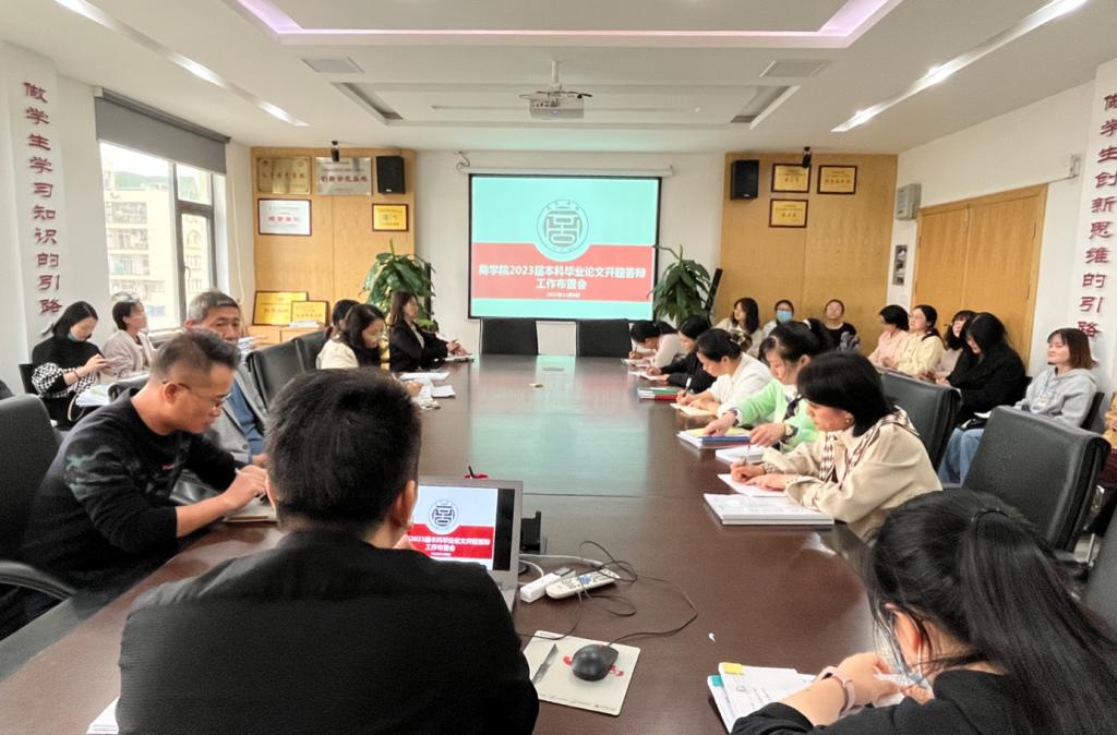 【英国365集团官网 讯】为保证2023届毕业论文答辩工作的顺利开展,确保人才培养质量,2022年11月8日下午2点,学院召开2023届本科毕业生毕业论文开题答辩工作布置会。会议由院长助理林琛主持,英国365集团官网全体专任参加会议。