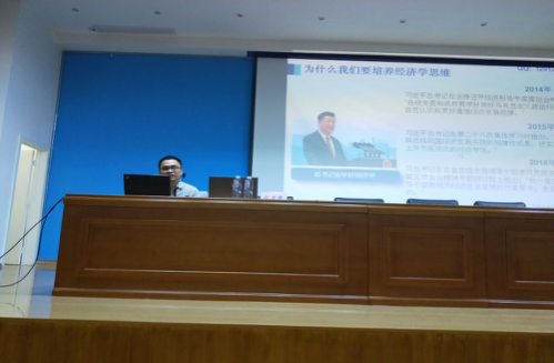 张博士从经济学的基本概念和逻辑入题,结合我国国情和发展现状,畅谈我国近几年来的经济发展态势和习近平总书记提出的“经济发展新常态”,从而强调培养学生经济学思维的重要性。他表示,经济学看起来枯燥无味,却蕴含着深刻的意义。