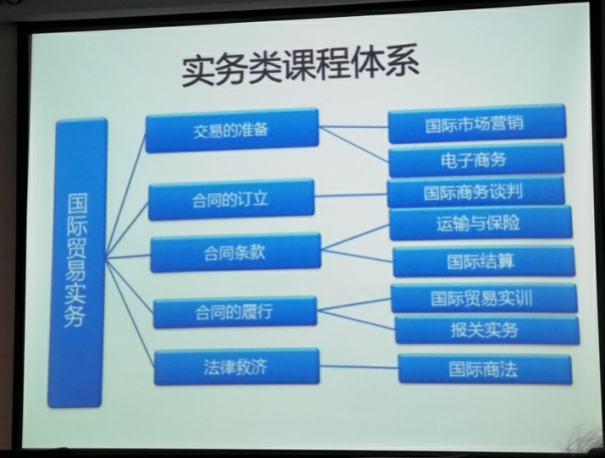 首先,王教授对国际贸专业的人才培养方案做了细致的讲解,肯定了我院的人才培养方案,同时指出人才培养定位要有本校的特色。在与同类型的本科高校的国际贸易专业对比,可以从走服装外贸特色路线,赢得社会的认可。再结合市场的细分与定位,确立我校国际贸易发展的方向。