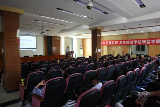 服装商贸分院讯(秘书部:罗欢):为帮助我院学生开拓眼界,了解证券市场的基本知识。于3月31日下午14:30分在行政楼一楼报告厅召开讲座,我院特邀请海通证券股份有限公司副总经理邹维鹏来我校讲学(邹维鹏,MBA,现任海通证券股份有限公司南昌营业部营销管理中心总经理,首席投资顾问,近十年证券市场从业经验,投资领域涵盖股票、期货、外汇、大宗商品以及贵金属等。信奉中长线投资理念,自创稳健收益投资模型,深受投资者喜爱。2014年成功预测证券市场底部及牛市行情,带领团队率先做出市场牛市判断。同时对于宏观经济的研判以及解析均得到了市场的验证)。此次讲座由商贸分院副院长杨水华主持,市场营销、国际经济与贸易专业的学生参加了本次讲座。
