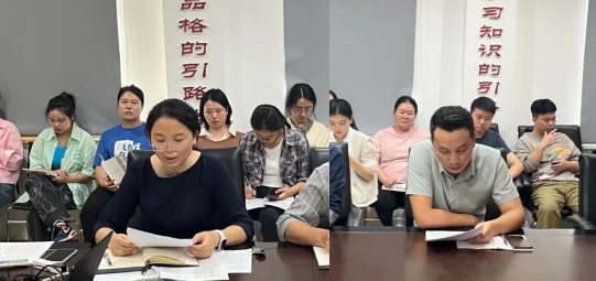 接下来,罗芳副院长领学了《关于进一步弘扬科学家精神加强作风和学风建设的意见》,强调了科学家精神的核心价值观和主要特点,激发了全体参会人员的敬仰之情。院长助理林琛领学了《深化新时代教育评价改革总体方案》,对方案进行了详细解析,指出了教育评价改革的重点和方向。