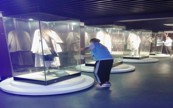此次志愿者活动,团队合作分工明确,任务清晰。大家组队、分工一起合作,将博物馆内的栏杆镜面都擦拭干净。大家打水换洗抹布,不断的弯腰,细心认真的擦拭着。服饰博物馆内陈列着不同民族的服饰。历史要求我们要珍视历史产物,推陈出新,民族服装设计和现代服装设计都必须传承和发展下去。