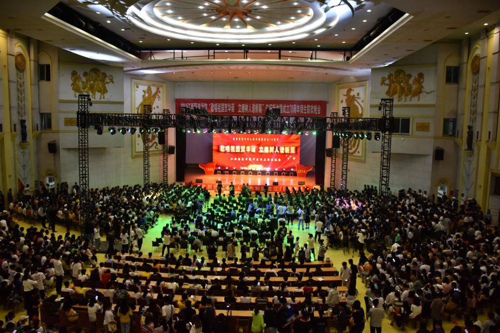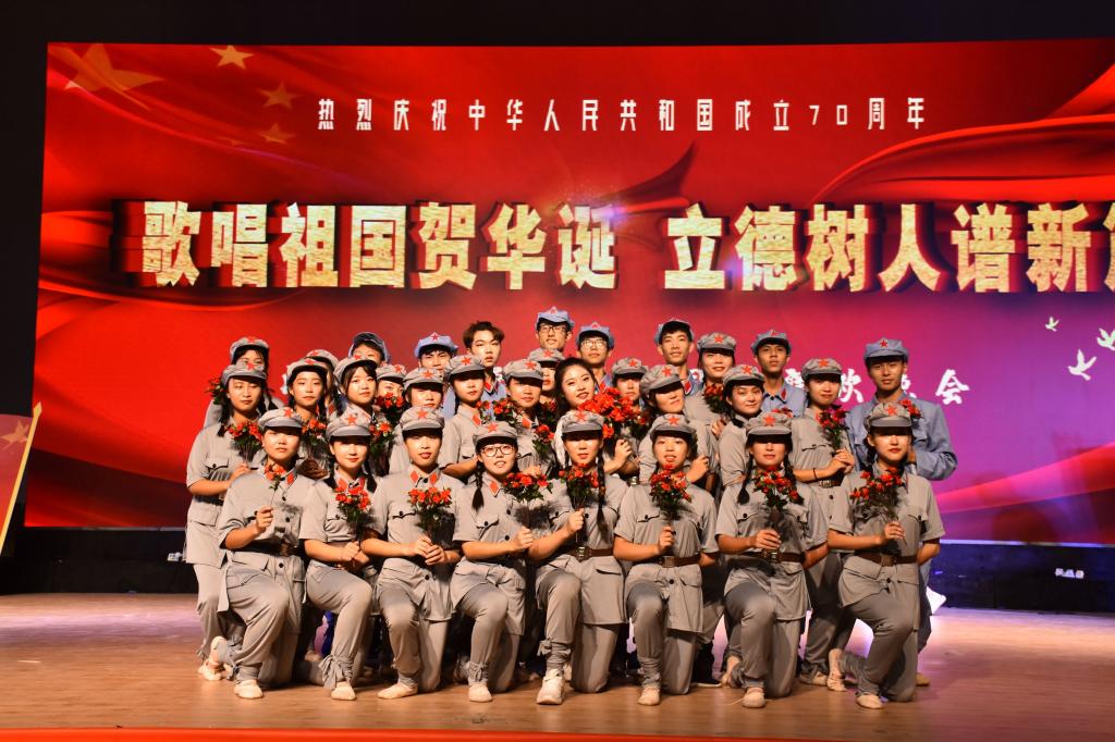 为弘扬爱国精神、活跃校园文化,以崭新的精神状态迎接新中国成立70周年,激励全校师生在本科合格评估的关键时期创造新成绩、树立新风尚。我校于9月29日晚7点在霓裳宫举行主题为“歌唱祖国贺华诞,立德树人谱新篇”的国庆联欢晚会。