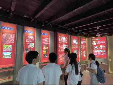 品畲族文化之美,促民族文化交流。“红心石榴籽籽同心”暑期社会实践团队一进入新时代文明实践所民俗馆的大门映入眼帘的是巨大的“畲”字介绍图和畲族的历史起源及发展。随着过道往右依次参观了畲族的工艺、饮食、语言方面的介绍。畲族人民生于大山,居于大山,畲族民间的传统手艺也取材于大山,看着民俗馆展示的畲族服饰和刺绣工艺,我们能透过纺纱织布的缝隙、沿着那刺绣的纹样,感受彩带上鲜活的图案。