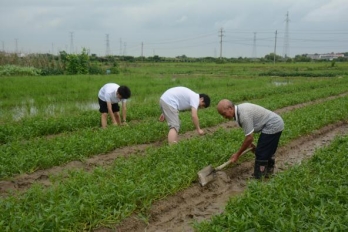 团队成员达村民的田地中,看到田地烈日炎炎的农民伯伯,看得出他们非常的艰辛与不易,他们说水稻的成长过程很复杂,从秧苗种地里要不定期进行浇水、施肥、打农药,这个过程很漫长不容易,我们队员得知了种地的辛苦,首先由指导老师韩健老师指出说到现在的孩子衣食无忧,让他们切实体会到田间劳作,其次对队员们进行分工,分工完成后,队员们个个热情高涨,由于我们的加入田间变得热闹起来,田间多了一丝欢声笑语,散发着青春的活力。