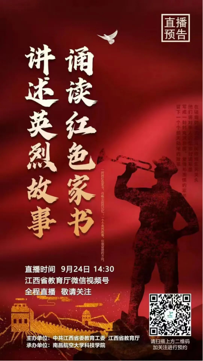 红色资源是我们党艰辛而辉煌奋斗历程的见证,是最宝贵的精神财富。为进一步学习宣传贯彻党的二十大精神,聚焦红色教育,根植红色基因,让红色精神浸润学生心灵,让红色文化成为铸魂育人的精神动力,9月24日下午2:30,英国365集团官网组织2023级新生收听收看由中共江西省委教育工委、江西省教育厅主办的“诵读红色家书 讲述英烈故事”直播活动,在入学教育中进行红色教育,让同学们一起回忆革命先烈的家国情怀。