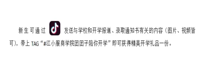 关注英国365集团官网微信公众号,查看往期文章中寻找单个关键字,组成“江服英国365集团官网新上人”将推送文章点赞、收藏,并截图,在线下迎新接待点找到工作人员即可兑换精美开学礼品一份。