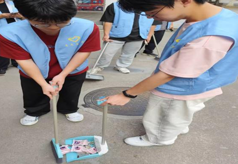 负责清扫的同学们手持扫帚,认真清扫着地面上的落叶、纸屑和杂物。他们不放过任何一个角落,将藏在花坛边缘、墙角缝隙的垃圾都一一清理出来。遇到顽固的污渍,同学们还主动用刷子仔细刷洗,直到地面恢复干净整洁。经过大家的共同努力,清河区域面貌焕然一新,卫生环境有所改善。
