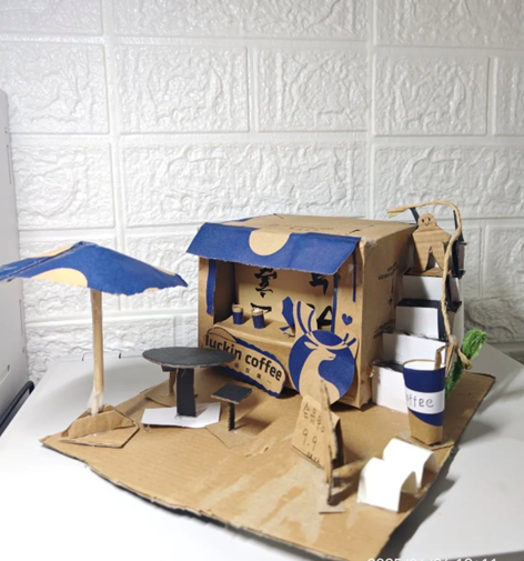 制作过程践行环保理念,将喝完咖啡后的纸壳回收再利用,通过剪裁、粘贴、组装等步骤,把废弃材料变成精致有趣的微景观。它不仅展现了手工制作的魅力,更传递了变废为宝的环保意识,让人在欣赏作品时,也能感受到创意与环保碰撞出的独特火花。