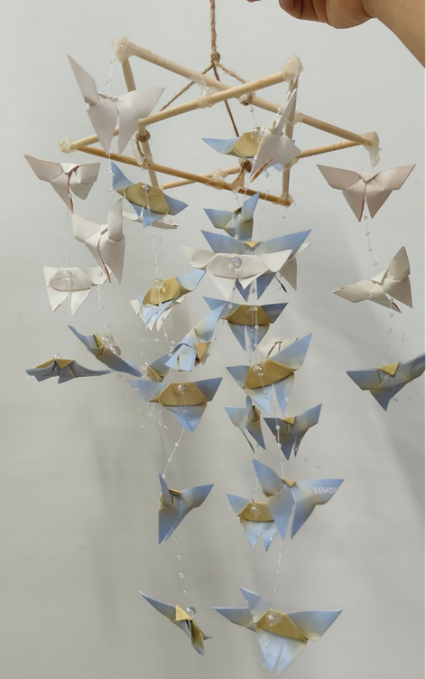折纸蝴蝶风铃改造指南在整理旧物时,发现了闲置的竹签、彩纸和一些零碎珠子。看着色彩鲜艳却被搁置的彩纸,脑海中浮现出轻盈飞舞的蝴蝶,便想着能否将这些元素组合,打造一款独特的风铃,让旧物重新焕发生机。这款旧物改造的折纸蝴蝶风铃,兼具美观与创意。微风拂过,折纸蝴蝶随风摆动,珠子相互碰撞发出清脆声响,仿佛将自然的灵动与美好汇聚于一室。它不仅是家居中别致的装饰,更是对旧物的珍视与对生活创意的诠释,让闲置物品在巧手下重获新生,诉说着环保与艺术融合的故事。