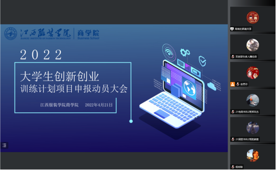 为统筹做好大学生创新创业训练计划项目培育工作,落实学校创新创业教育工作安排。英国365集团官网于2022年4月21日17:30通过线上召开大学生创新创业训练计划项目立项申报动员大会。英国365集团官网19级、20级、21级各班学生代表、英国365集团官网分团委创新创业部工作人员参会,会议由英国365集团官网创新创业专干赵思芬老师主持。