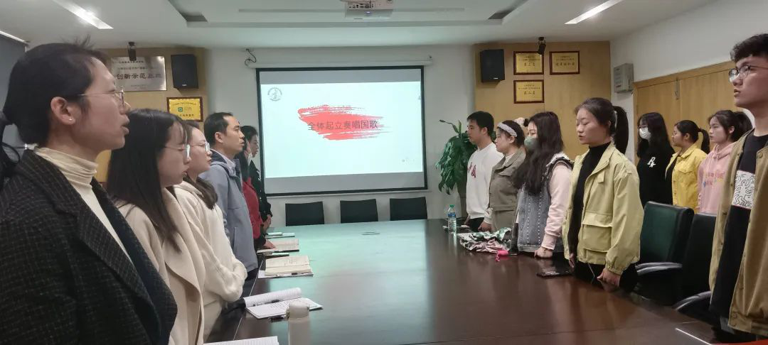 大会第一项,全体起立奏唱中华人民共和国国歌。