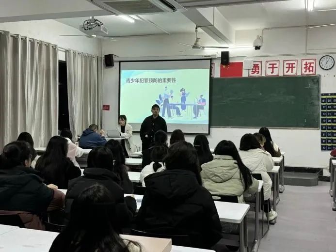活动现场,主讲人分别从青少年犯罪的原因分析、预防策略及预防措施三个方面进行讲解。主讲人指出青少年犯罪主要是由家庭、学校、社会和个人四个因素导致的,同时强调在预防青少年犯罪过程中家庭、学校和社会三方合作的重要性。其中家庭是孩子成长的第一课堂,父母应言传身教;学校则需要加强对学生的思想道德教育、法治教育和心理健康教育;社会也需为青少年提供更多的正面引导和支持。