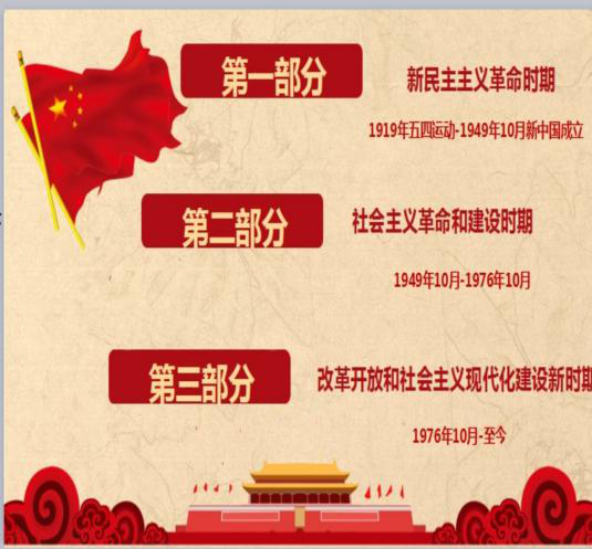 周青老师从三个部分的故事深入浅出的讲述了党的历史,第一部分:新民主主义革命时期。第二部分:社会主义革命和建设时期。第三个部分:改革开放和社会主义现代化建设新时期。通过《红色的追忆》视频资料及《我的1919》影视片段,寻找历史足迹,重温红色经典,为我们生动形象的讲述了党发展的历史,实现中华民族的伟大复兴,是历史赋予中国共产党的光荣使命。