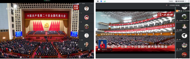 2022年10月16日上午十点,中国共产党第二十次全国代表大会在北京人民大会堂隆重开幕,我院组织全体教职工线上集中观摩党的二十大开幕盛况,认真聆听习近平同志代表第十九届中央委员会向党的二十大汇报的工作报告。