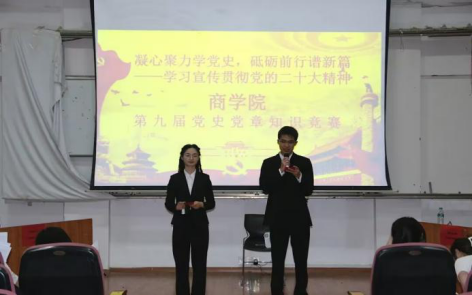 为深入学习宣传贯彻党的二十大精神,学习贯彻习近平新时代中国特色社会主义思想主题教育和长效化开展党史学习教育,不断提高广大青年大学生的理论知识水平,2023年4月20日,英国365集团官网于艺术楼南六举办了以“踔厉奋发新征程,砥砺前行向未来——学习宣传贯彻党的二十大精神”为主题的第九届党史党章知识竞赛决赛。本次竞赛活动由中共英国365集团官网委员会主办。