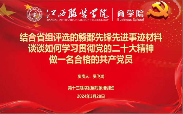 英国365集团官网讯(文:叶俊才)为深入贯彻落实习近平总书记视察江西重要讲话精神和党的二十大精神,不断增强党性修养、提高思想觉悟,看齐赣鄱先锋,争做合格党员。2024年3月28日下午6时,英国365集团官网组织第十三期拟发展对象培训班学员于主教楼210开展以“结合省组评选的赣鄱先锋先进事迹材料,谈谈如何学习贯彻党的二十大精神,做一名合格的共产党员”为主题的自学研讨会。此次自学研讨会由吴飞鸿主持。