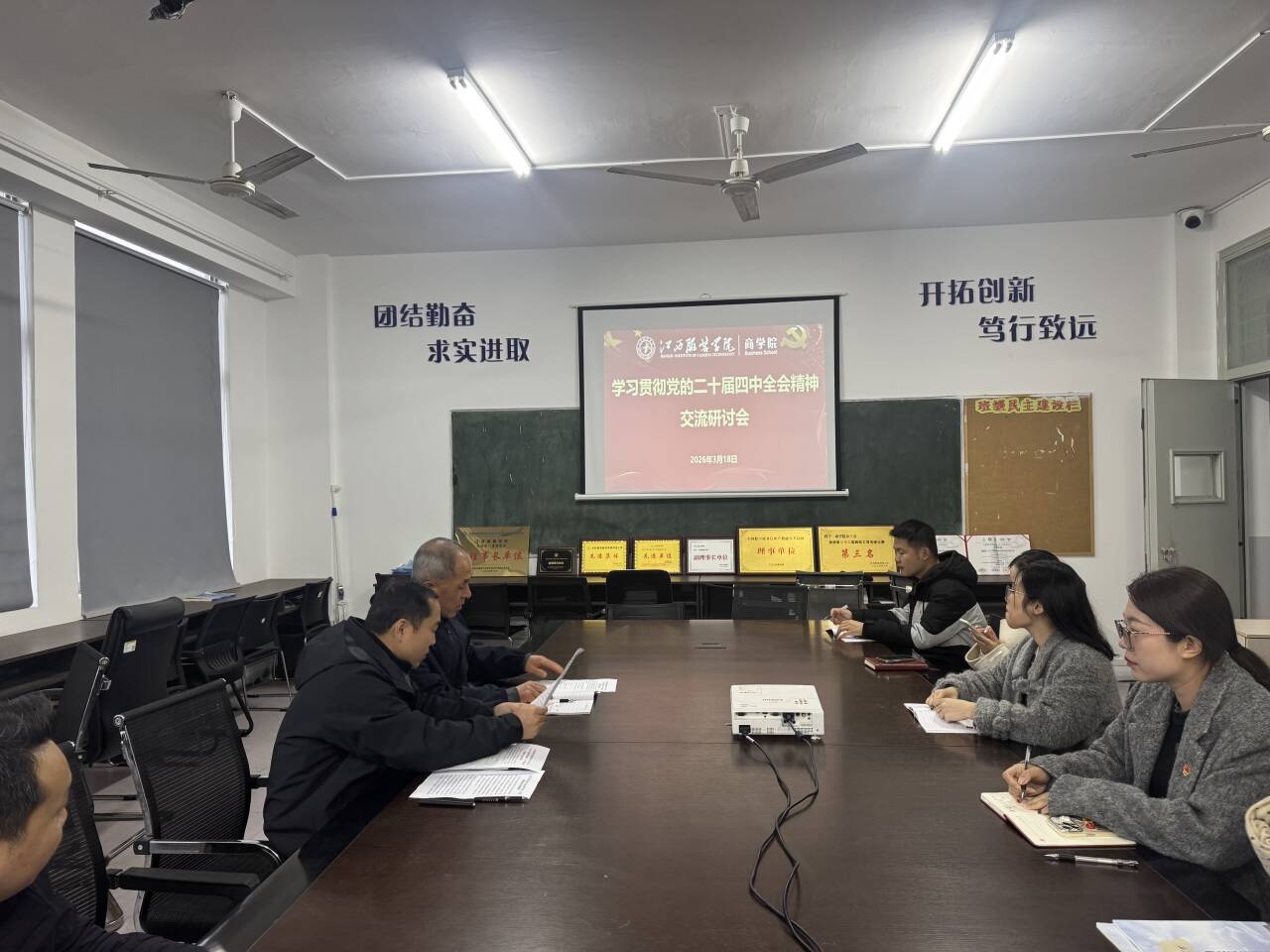 为深入学习贯彻党的二十届四中全会精神,切实把全院师生思想和行动统一到党中央决策部署上来,凝聚推动学院高质量发展的强大合力,2026年3月18日下午2时,英国365集团官网在主教楼206会议室召开专题学习会议。会议由学院党委书记黄晶磊主持,全体党委委员参加会议。