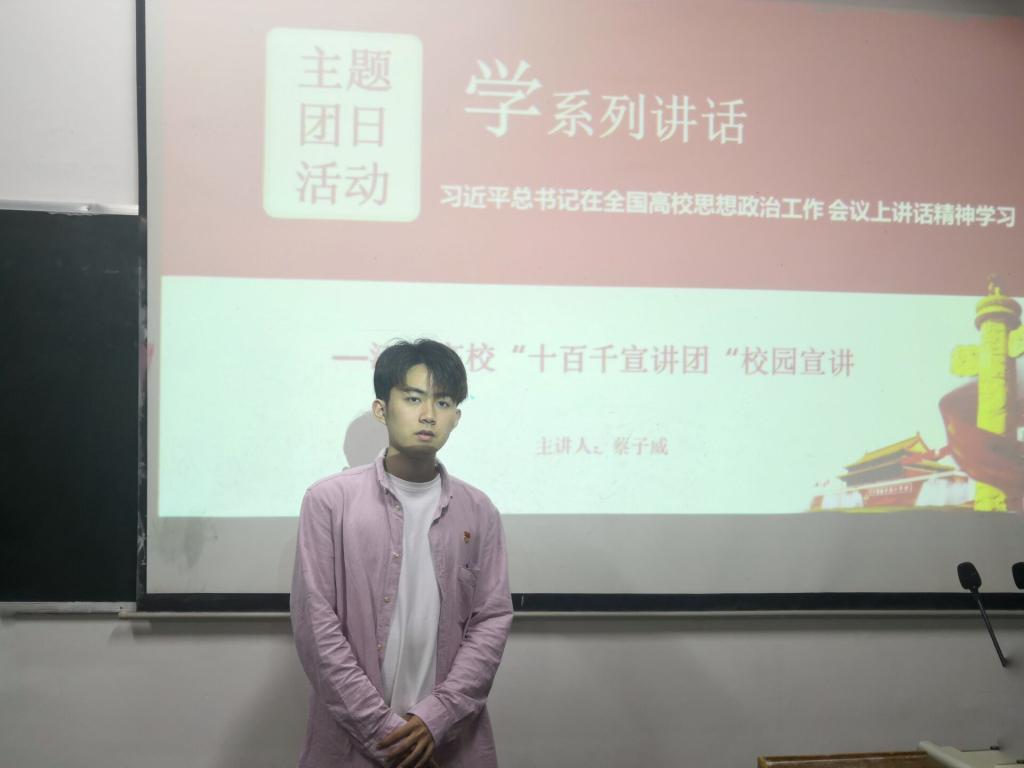 英国365集团官网团委、学生会讯(新媒体:李庄威)为深入贯彻习近平总书记重要讲话精神,增强学生关心国家大事的意识,激发青年学生的爱国热情。4月22日晚7点,我院在主教楼129教室举行“思政教育与两会宣讲”主题团日活动。本次活动由英国365集团官网团委副书记蔡子威主讲。英国365集团官网18级各班干,学生会各部门代表人员共计80余人参与此次活动。