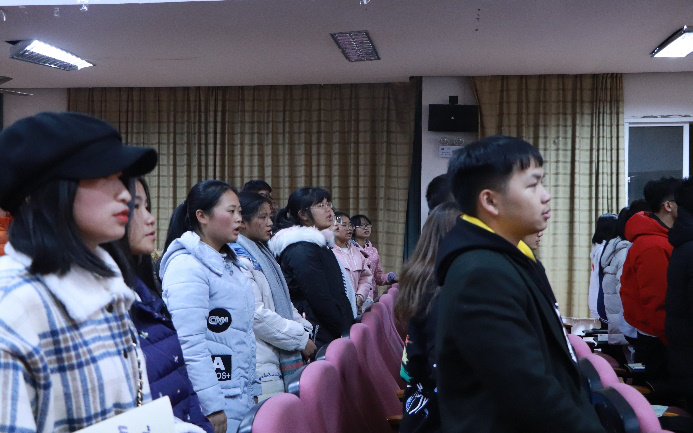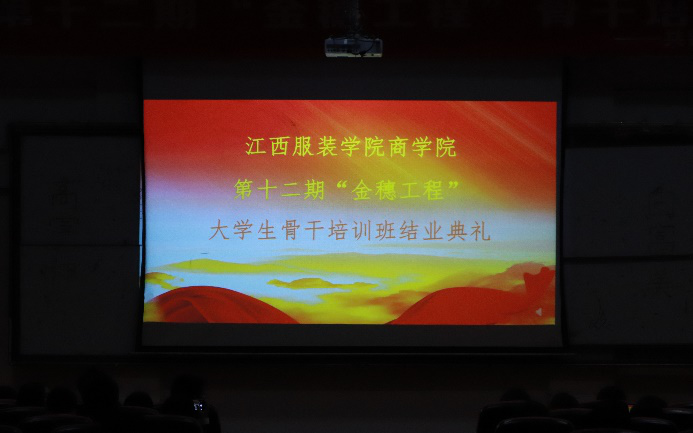 11月26日晚上,我院于艺术楼南六报告厅举行第十二期“金穗工程”大学生骨干培训班结业典礼。骨干六班学员张小靓主持典礼,英国365集团官网党总支副书记黄晶磊、团委书记欧阳耀诚、团委副书记蔡子威出席。骨干班全体学员共计300余人参加。