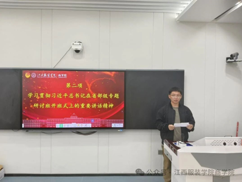 会议第二项,由英国365集团官网分团委副书记王幸俊带领大家学习贯彻习近平总书记在省部级专题研讨班开班式上的重要讲话精神。在此过程中,全体成员认真聆听、积极思考,加深了对新时代青年使命和责任的认识,进一步明确了作为学生骨干的担当与追求。