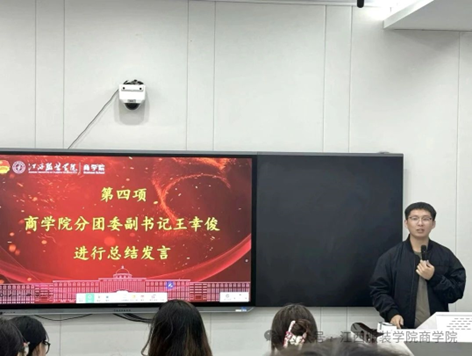 会议第四项,分团委副书记王幸俊作总结发言,他强调团队协作与积极参与的重要性,勉励全体成员在工作中牢记初心,齐心协力推动学院团学工作向更高层次迈进。