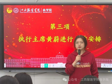 会议第三项,执行主席黄蔚为全体成员进行了接下来的工作安排,规划了未来工作方向,并勉励大家始终秉持服务同学的宗旨,奋发进取,不断创新,不断提升。