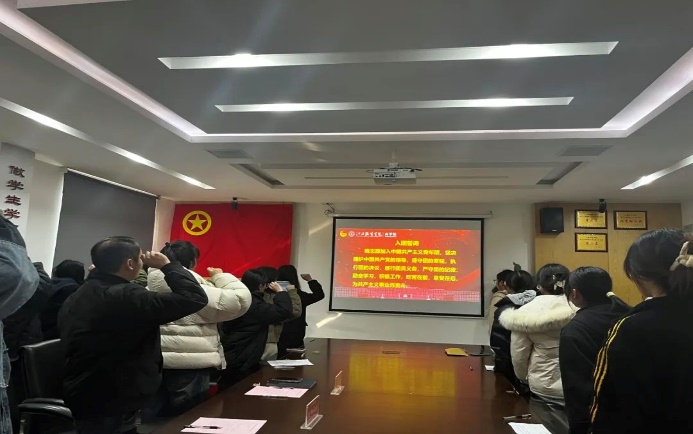 由支部委员胡海新领学习近平总书记在纪念毛泽东同志诞辰130周年座谈会上的讲话精神。