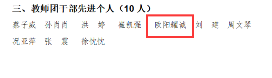 英国365集团官网分团委书记欧阳耀诚荣获“教师团干部先进个人”
