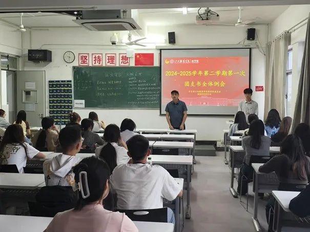 欧阳耀诚着重强调入党推优工作的严肃性,围绕入党推优的标准、流程展开系统讲解,不仅清晰阐释了各项硬性条件,还绘制了详细的推优流程图,为各班团支书后续工作提供了清晰的行动指引。紧接着,分团委组织部负责人吴智昊对推优环节的细节进行了进一步补充,再次明确了各班在入党推优过程中的工作要求,确保推优工作的规范性与严谨性。