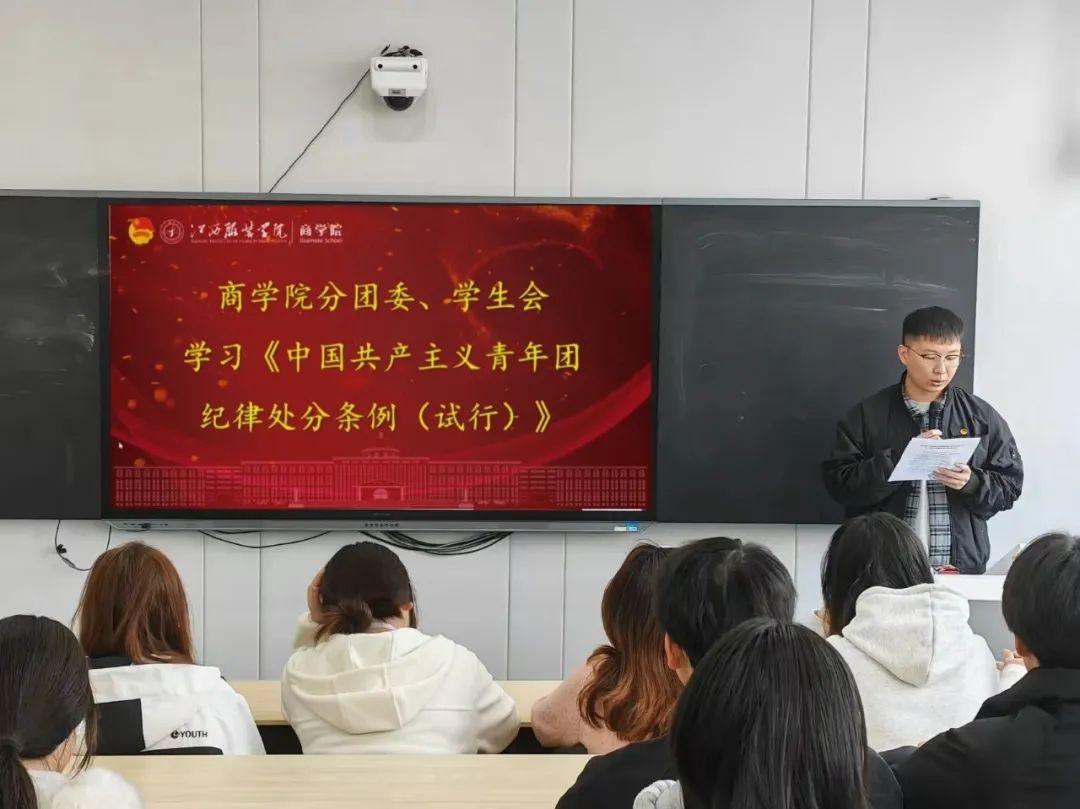领悟团纪精神,筑牢商院青春担当。为全面落实从严治团要求,加强团员思想政治教育和纪律意识,2025年4月1日12:50,英国365集团官网分团委、学生会于主教楼129室组织开展了《中国共产主义青年团纪律处分条例(试行)》专题学习活动。此次学习由英国365集团官网分团委副书记王幸俊主持,分团委、学生会成员共同参与。