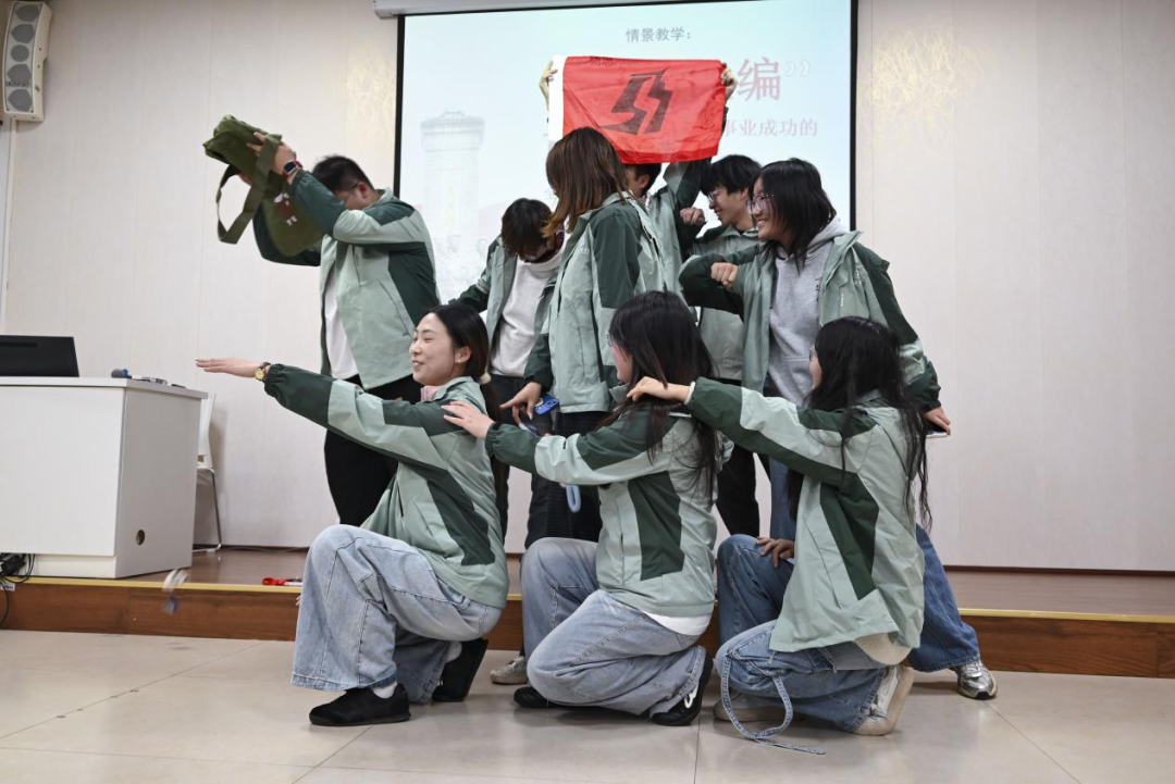 在随后的实践体验环节中,学员们以小组为单位开展模拟“改编”,展班旗、喊口号、唱班歌,在沉浸式体验中凝聚组织合力,增强集体归属感与责任感。