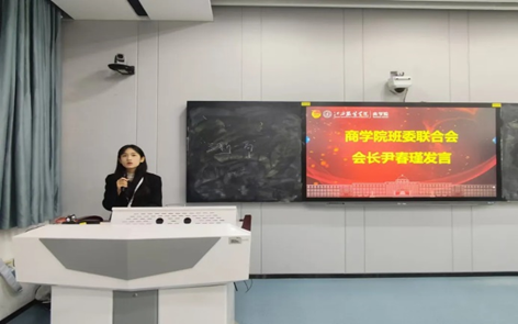 接着由班委联合会会长尹春瑾对本次会议进行总结发言,她充分肯定了全体成员一年来的辛勤付出,并对未来工作提出新的期望。她鼓励大家在新的一年里继续秉持奉献精神,提高工作效率,携手为班级建设贡献更大力量。