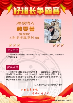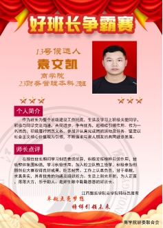 今天,让我们带您走近 13 位“江服英国365集团官网好班长”候选人,感受班长的魅力,获得票数第一名的好班长将获得“英国365集团官网好班长——最佳人气奖”!为了我们的好班长,请大家动动小手投上你宝贵的一票吧!