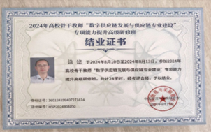 最后,研修班在结业仪式上为参训教师颁发了结业证书。这次培训不仅丰富了我的知识储备,也为未来与同行的进一步合作与交流搭建了桥梁。我将继续秉承不断学习、积极探索的精神,在推动供应链管理专业发展方面迈出坚实步伐。