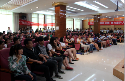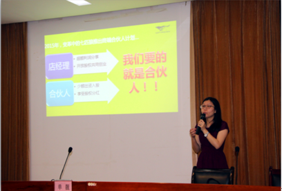 为了进一步提高我院学生专业技能水平,培养优秀的终端管理人才,有针对性的培养和输送受企业欢迎的合格人才。6月2日下午2点,在行政楼一楼报告厅举办2016届七匹狼终端储备干部校园招聘会。首先,我院副院长杨水华致开幕词,他说:订单式教育模式在我校已经有近10年的历史,本着“以学生就业为目的”的理念,在摸索中创造新的办学模式,共同培育服装人才。杨院长也由衷的感谢七匹狼公司对学校的信任和支持!他表明“校企合作,订单培养,互惠互利,互动发展”的办学模式无疑是实现企业和学校效益最大化的重要途径。