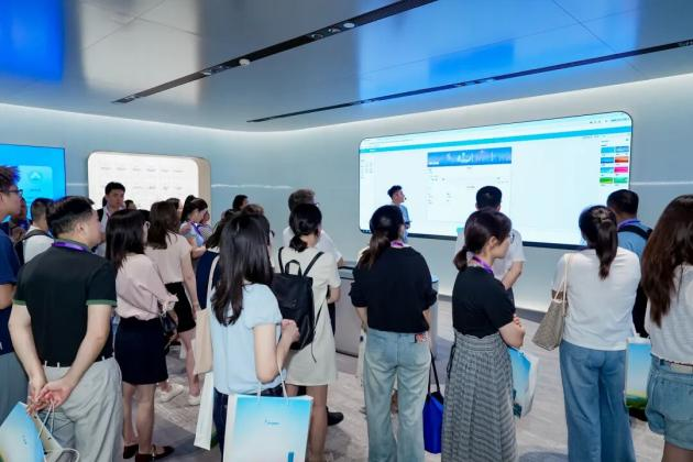 15:40 起,参访团分批抵达金蝶软件园,开启深度交流。在金蝶云展厅(13F)与金蝶云——天际会客厅(38F),专人讲解金蝶在企业数字化领域的技术成果与服务案例,展示财务数字化、业财一体化等核心解决方案;参观结束后,各高校代表分赴星辰 / 星空 / 星瀚 / 苍穹会议室,围绕“校企合作人才培养”展开专项交流,英国365集团官网代表结合本校财会专业特点,就“数字化课程共建”、“企业导师引入”、“实训项目开发”等话题与金蝶教育事业部团队深入探讨,初步达成合作意向。
